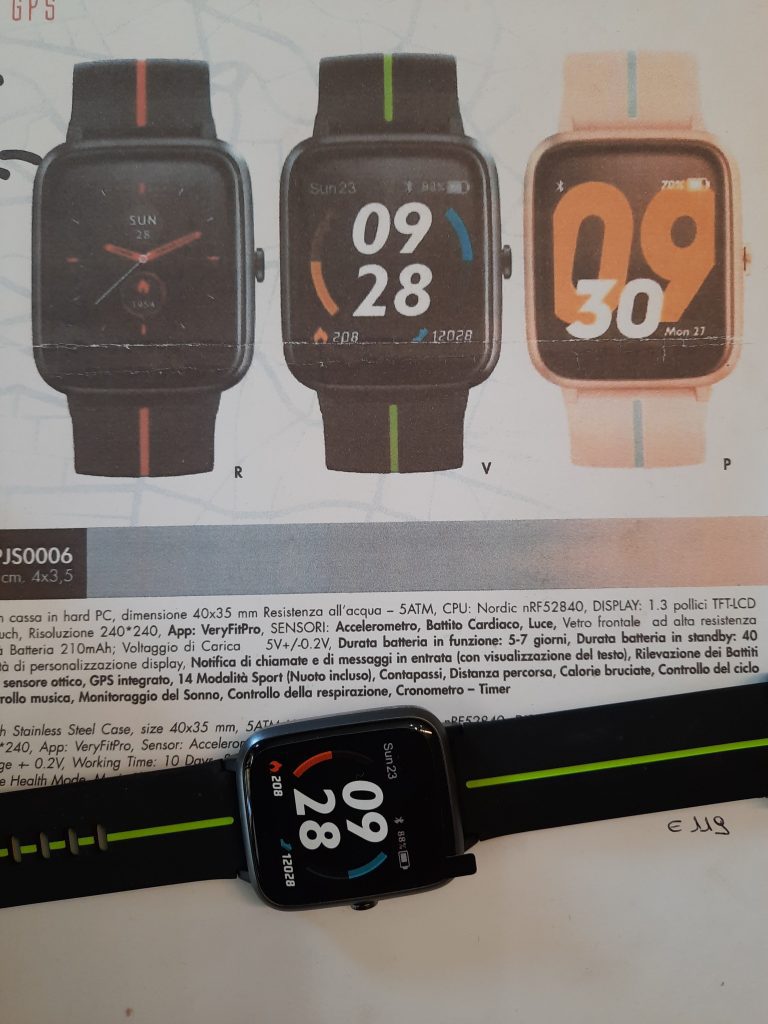 Orologio SMARTWATCH con GPS integrato – Accelerometro -Notifica chiamate e messaggi (wechat, facebook, instagram, messenger, linkedin, whatsapp, skype e altro)- Rilevazione battiti cardiaci – Contapassi, distanza, calorie – Monitoraggio del sonno – 14 modalità di sport – Controllo musica – cronometro, timer – personalizzazione del display – Rilevazione meteo – Registro attività sportive – Multilingua