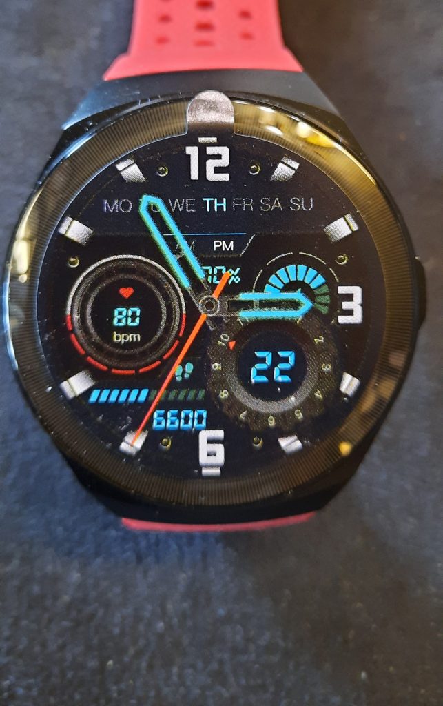 Smartwatch, cassa in metallo dimensione 46 mm, cinturino in silicone disponibile in due colorazioni, Full Touch, Possibilità di effettuare e ricevere telefonate, Notifica di chiamate e messaggi con visualizzazione del testo, Rilevazione battiti cardiaci, Ossigenazione del sangue, Contapassi, Distanza, Calorie, Monitoraggio del Sonno, 10 Modalità di sport, Previsioni Meteo, Controllo della Respirazione, Possibilità di scaricare Quadranti dalla App, Cronometro, Timer. Durata batteria in funzione 10 GG, in stand by 45 GG.