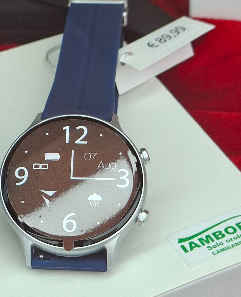 Smartwatch, cassa in metallo dimensione 46 mm, cinturino in silicone disponibile in due colorazioni, Full Touch, Possibilità di effettuare e ricevere telefonate, Notifica di chiamate